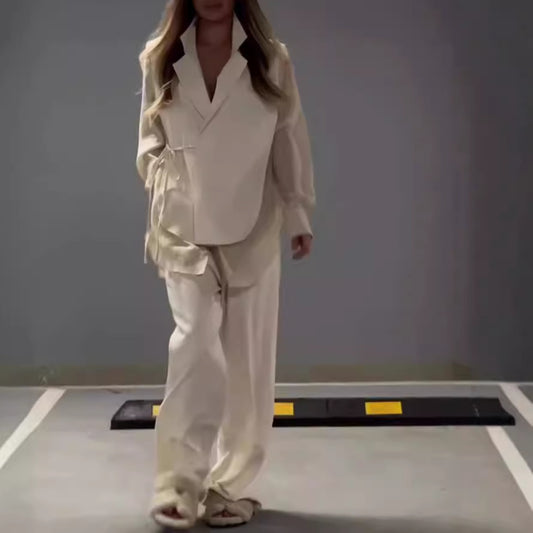 Livraison GratuiteHaut en mousseline à empiècements & pantalon droit